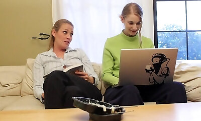 Lesbian dolls fuck on the office flooor