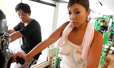 Ample breasted braless bitch Nami Himemura hooks up with several guys at the gym