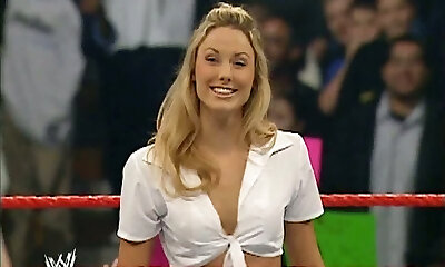 Wrestling babe Stacy Keibler shows off her underpants spread eagle