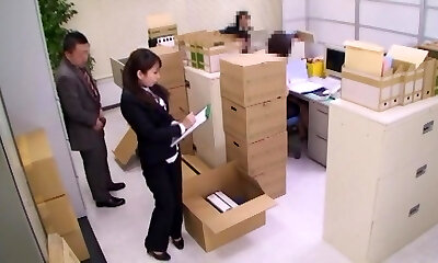 japanese MILF fucked by her elder manager at work next to other colleagues !